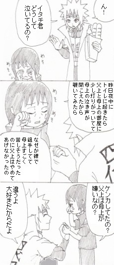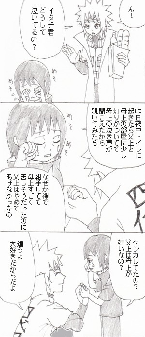 忍組手(寝技)の鍛練中だと思ったんですよイタチボーヤは。